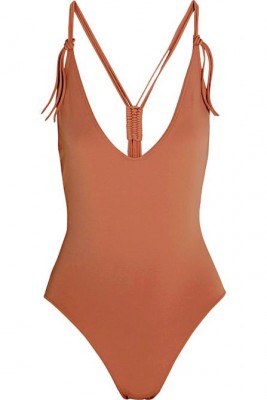 Ткани легкие, дышащие, среди моделей есть остроактуальные высокие трусики в бандажном стиле, высоту которых можно регулировать, ретро-бюстгальтеры, плавки-бикини на тонких завязках, бюсты с треугольными чашками и цельные купальники с лифами-бандо. Во всем этом прослеживается спортивная эстетика 1930‑х: некоторые купальники отчетливо напоминают модели, которые носили гимнастки той эпохи.