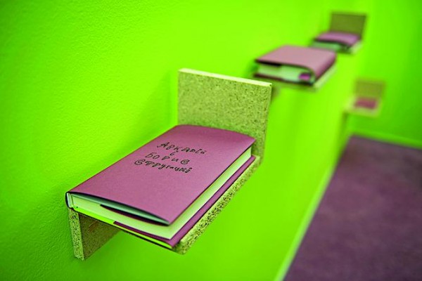 У Алевтины Кахидзе пространство одного из залов РАС превращено в диковинный мир, наполненный детскими грезами и фантастическими видениями. Нежно-зеленые стены и мягкий сиреневый ковер, лежащие тут и там книги Саймака, Ле Гуин, Лема, Стругацких отсылают к тому времени, когда девочка из Ждановки в Донбассе могла уйти от окружающей реальности только благодаря чтению научной фантастики. В этом идиллическом придуманном мире расположен и уголок посвящения Цаголову — подиум с фотографией и телекартинкой, которая эту фотографию повторяет. Впрочем, без подсказки художницы узнать источник вдохновения в работе Цаголова было бы трудно, — так меняет общая атмосфера зала несколько жесткую интонацию его работ 1990‑х годов. Голос самой художницы постоянно звучит в зале, она читает разные фрагменты текстов — реалистичных, но и невероятных одновременно, жизненных и в то же время как будто придуманных гениальным фантастом.