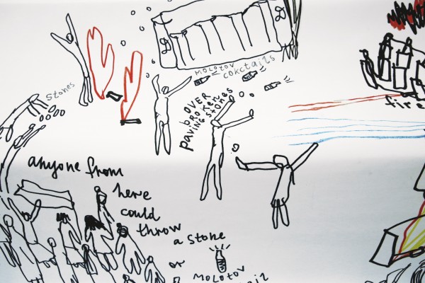В музее Кахидзе построила интригу на том предположении, что, получив Премию Малевича в 2008 году, она могла бы за последующие годы изменить род занятий. Например, стать дизайнером, рекламистом, сценаристом сериалов или собирателем трав… Ее работы на выставке иллюстрируют эту возможную жизнь, в которой неизменным остается «место» художницы — Музычи. Но события извне активно вторгаются в ее изолированный комфортный мир: на покрывале в одном из залов Алевтина изобразила сцену зимнего противостояния на улице Грушевского, в центре которого оказался музей. Будучи непосредственным очевидцем событий, художница превратила свой беглый рисунок в своеобразный репортаж из горячей точки, разрушив границы между защищенным кругом своего дома-резиденции и непредсказуемой стихией протестных движений.