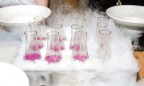 Десерт рассчитан на то, чтобы угодить всем. И следящим за фигурой, и тем, кто не может представить завершение трапезы без сладостей. Кисло-сладкое, ярко-оранжевое натуральное пюре из спелого манго окунается в черный шоколад, замораживается жидким азотом и подается с прозрачным желе, насыщенным ароматом и вкусами имбиря и лемонграсса. Получившиеся «замороженные камушки» покрывают сверху пылью из сожженных черных кунжутных семян.