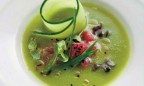 Карамоленгос не дает интервью и не расшаркивается с гостями (однажды он отказался выйти поприветствовать Джорджа Буша), но на его версию греческой кухни ценители едут специально, и не только в дни фестиваля. Знаменитый ресторан Tomatа — его детище, начинавшееся с «томатного» меню — от амюз-буш до мороженого. Tomatа всегда был новаторским проектом: к примеру, там готовили греческие блюда с азиатскими специями. Вот и сейчас заведение подтвердило свое реноме: после обильного мясного меню (6 выносов) хотелось петь и танцевать. Вечер начался и закончился огуречной темой: холодным супом из огурца с тунцом — и сладким огуречным супом с мороженым и запеченным с китайским черным уксусом помидором. А между этим подавали запеченные в пергаменте макароны с курицей, котлеты в глазури из хойсина и меда, свиную грудинку с йогуртовым соусом в глазури из айвы, кебаб из сибаса и креветки.