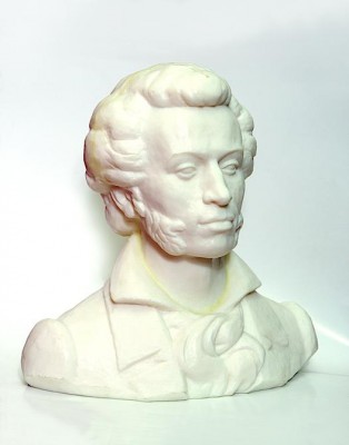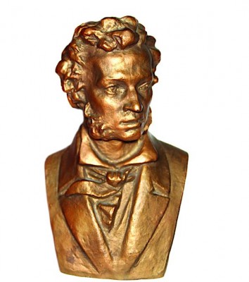 И мы его, увы, не купили. В другой раз дефилируем по тому же рынку: лежит пластмассовая тарелка с изображением сцены из жизни великого русского поэта, тоже, естественно, до того кошмарная, что хоть плачь, но опять же — Пушкин! Я говорю жене: «Надо хоть эту взять», а она снова за свое: «Нет, не надо», так что снова мы Пушкина не купили. Но тогда я задумался: а ведь это определенная тема, почти как «Семь слоников на пианино». Так я и решил: следующий Пушкин — уж точно будет моим. Даешь великого русского поэта в каждый дом!