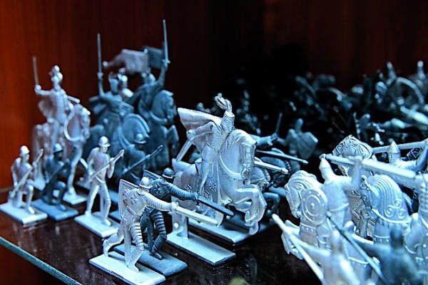 Коллекционировать солдатиков я начал в десять лет: заинтересовался античной историей, а как раз тогда, в конце 1970‑х, Донецкая фабрика игрушек начала массово выпускать наборы пластмассовых солдатиков — викингов, римлян, индейцев, ковбоев. Как и большинство советских мальчишек, был в восторге от них — до этого в СССР объемных солдатиков не производили: в продаже были только плоские фигурки и «столбики» — солдатики, стоявшие по стойке смирно. Новые солдатики были как живые! Наборы стоили 50 копеек и моментально стали дефицитом. Но самым редким солдатиком был раненый стрелой воин — восьмая фигурка из комплекта «Индейцы». Поговаривали, что ее запретили из‑за жестокости сцены. Через много лет я узнал настоящую и гораздо более прозаичную причину: рабочие просто за­пороли пресс-форму этого солдатика. Сейчас эта фигурка стоит от $100.