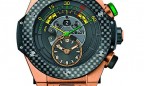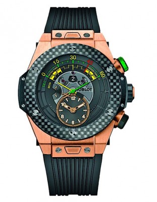 Швейцарская мануфактура Hublot была официальным хронометристом нынешнего чемпионата мира по футболу, и было бы странно, если бы по этому поводу мануфактура не выпустила чего‑нибудь необычного. Состоящий из 385 деталей мануфактурный калибр Hub1260 Unico с 72‑часовым запасом хода стал первым биретроградным механизмом Hublot. Особой благодарности заслуживает хронограф этих часов. Он состоит не из двух циферблатов, как обычно, а из двух шкал. Секундный и минутный отрезки хронографа окрашены в цвета бразильского флага и размечены в соответствии с потребностями футбольных хронометристов: на шкале есть 45‑минутная отметка и два 15‑минутных отрезка, соответствующих времени дополнительных таймов. Футбольные болельщики могут выбирать из двух версий этой модели — в золотом и керамическом корпусах. Версия в золотом корпусе выпущена тиражом 100 экземпляров и доступна по цене $ 42 400. Приобрести керамическую модель и проще и дешевле: 200 копий этой версии продаются по цене $ 26 300.