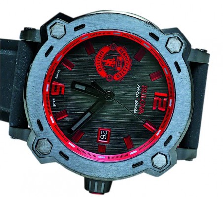 Для того, чтобы подчеркнуть связь с Manchester United, на циферблате размещен логотип клуба (на золотые версии часов логотип MU наносится по желанию покупателя). Безели всех моделей закреплены особо прочными винтами из титана пятого класса, применяемого в аэрокосмической индустрии. Благодаря прочному корпусу и титановым винтам часы с автоматическим калибром Sellita SW200 выдерживают давление воды на глубине 100 метров. Цены на титановые и стальные версии моделей Accu-Swiss Percheron Manchester United колеблются в пределах $ 800‑3900, золотая версия стоит $ 42 000.