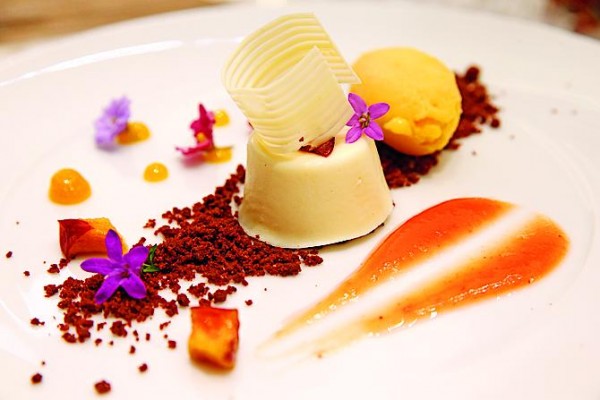 Наконец я познакомилась с шефом-кондитером Park Kitchen Леонардо Антониуччо. Скромный и немногословный, с удовольствием поддерживающий беседу о еде. Его пирожные-макароны считаются сейчас одними из лучших (если не лучшими) в городе. Для персикового меню он разработал сложносочиненный десерт: мусс из белого шоколада и греческого йогурта с персиковым соусом, компрессированным в вакууме персиком, сорбетом из персика и маракуйи и шоколадным крамблом (120 г, 85 грн). Компрессированный персик выглядит чуть подвяленным, такой же он и на вкус. И снова‑таки, все ингредиенты нужно смешивать, чтобы добиться идеального вкуса: в меру сладкая шоколадно-песочная крошка крамбла с нежным муссом, кисловатым соусом и освежающим сорбетом. И внешне это очень красиво.