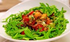 Главный пунктик шефа — баланс вкусов и мне это очень нравится. Сладкий, кислый, острый, соленый, иногда умами — все должно быть сбалансировано. Так, в салате с персиками-гриль, рукколой и карамелизированным фундуком (150 г, 95 грн) сладость фруктов и орехов сбалансирована запеченным мягким козьим сыром и выдержанным бальзамическим уксусом.