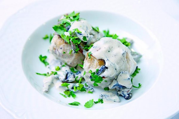 Помните сцену в мультфильме «Рататуй», когда желчный критик съедает блюдо, приготовленное гениальным крысенком, и погружается в детские воспоминания, так как вкус оказался точно таким, как у рататуя, который готовила его мама? Примерно такое чувство я и мои сотрапезники испытали, попробовав куриные тефтельки с грибами под сливочным соусом. «It's a real comfort food», — таков был вердикт. Лучшие бабушкины или мамины куриные котлетки-тефтельки, приготовленные для любимого чада.