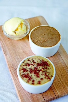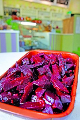 Еще одно нововведение — тапас-ланч. «Тапас в Киеве до сих пор не приживались», — удивляюсь я. — «Знаю, но мы решили рискнуть», — отвечает Клара. Тапас-ланч официально действует с 13:00 до 15:00, но блюда готовы уже в 12:00, так что если вы придете чуть раньше, думаю, вам не откажут. Предложение очень приятное: 4 порции тапас за 69 грн. Можно варьировать как угодно: 2+2, 3+1 или взять четыре разных тапас. Блюда постоянно меняются, часть их перекочевывает из основного меню. В моем случае это были баклажанная икра и запеченные перцы. Казалось бы — перцы, не лучше ли было взять что‑то рыбное или мясное, но перцы я бы не променяла ни на что. Идеально приправленные лимонным соком, солью и оливковым маслом, прохладные — то, что нужно в жару. Баклажанная икра — «живая», свежайшая, с легкой ноткой чеснока (плевать на сослуживцев в офисе — пусть завидуют, в конце концов можно пожевать петрушку или мятную жвачку). Еще одно условно простое блюдо — ломтики отварной свеклы с горчичными зернами и молотой горчицей, лимонным соком, оливковым маслом и зернами кориандра. При желании можно дозаправить лимонным соком и солью, но, как по мне, баланс вкусов выдержан идеально и свекла не подкачала — темно-пурпурная и сладкая.