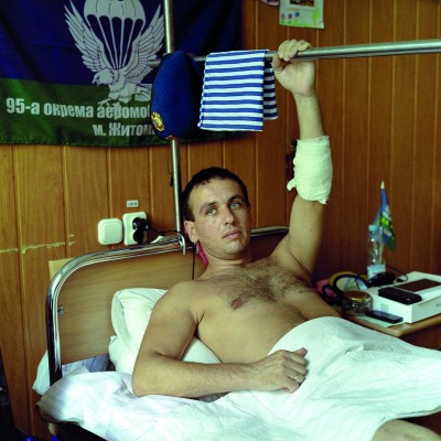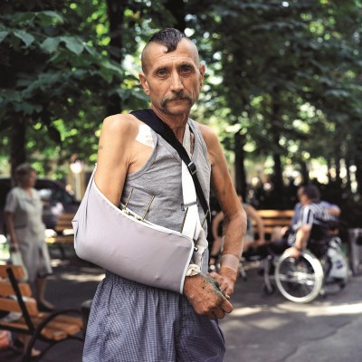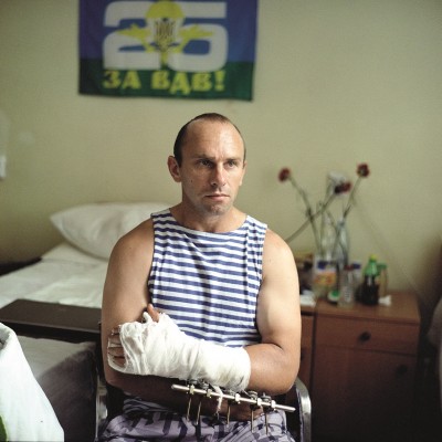 В то же время, вторая часть, наоборот, на художественной составляющей фокусируется в значительно меньшей степени, нежели на документальной и социальной. Это фотопроект, основная цель которого — поддержка пострадавших в ходе АТО как участников боевых действий, так и переселенцев. Куратор проекта Марьяна Мусий выбирает лишь одного фотографа — Александра Чекменева. Этот автор уже более десяти лет снимает на черно-белую пленку реалии Донбасса — его серия «Портреты», запечатлевшая донбасских стариков, вошла в основной проект Первой Киевской биеннале современного искусства. Сам фотограф родом из Луганска, поэтому регион знает как никто другой. Что касается его фотографического стиля, который можно отнести к харьковской школе фотографии, то это достаточно жесткая фотодокументалистика, где на первый план выносится история выживания человека в социально непригодных условиях. Проще говоря, героями фотографий Чекменева являются люди, ставшие бесправными заложниками своей среды. Два года назад, после выхода своей книги «Донбасс», фотограф сказал: «Никакой политики в моей книге нет — есть только жизни людей». Речь идет о тех жизнях, до которых никому не было дела, пока не началась война. По сути, работы Чекменева ложатся в парадигму «услышать Донбасс», и сейчас этот призыв зазвучал в колоссальном пространстве Арсенала. В проект, который показан здесь впервые, вошли фотографии из зоны АТО, а также снимки солдат, которые находятся на лечении в Главном военном клиническом госпитале Киева. Изображения сопровождаются текстовыми историями о людях и реквизитами счетов, на которые можно перечислять материальную помощь. В связке с этим проектом в ночь с 23 на 24 августа в Арсенале состоится благотворительный концерт.