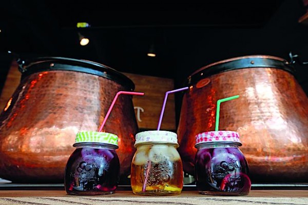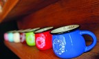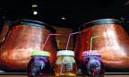 «Медную» тему продолжают сверкающие чаны для варки глинтвейна, изготовленные под заказ немецкими мастерами. Если с едой в «Глинтвейне» все условно просто, то каждая деталь интерьера и каждый предмет утвари уникальны и созданы специально для заведения: столы, которые проектировал, собственноручно резал и клеил сам архитектор; каллиграфический круг, заполненный цитатами из стихотворений знаменитых украинских поэтов; милые пузатенькие керамические «кухлики», имитирующие эмалированные кружки, и такие же толстенькие стаканы и чарочки.