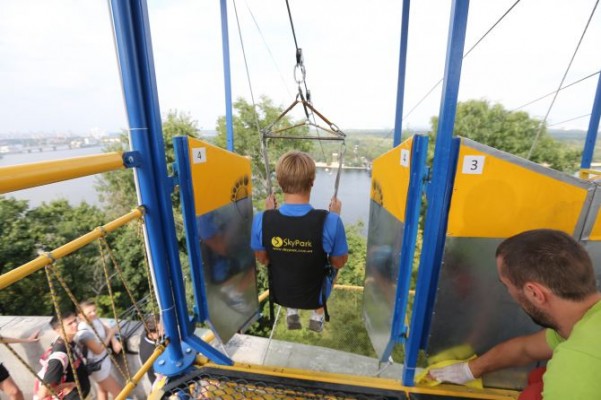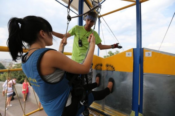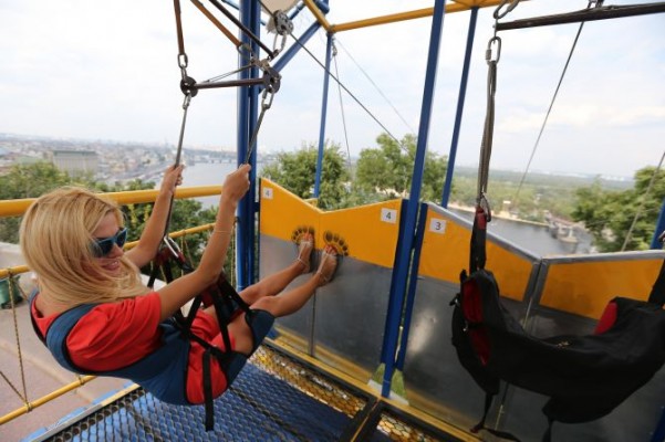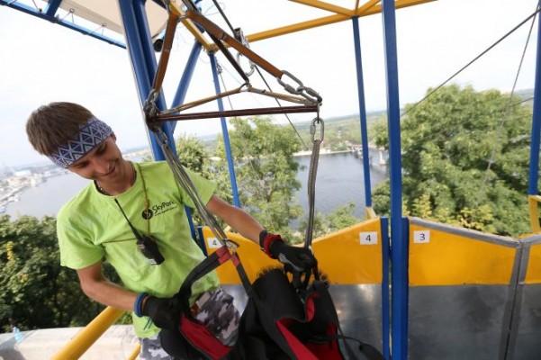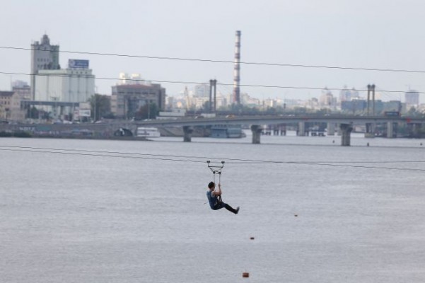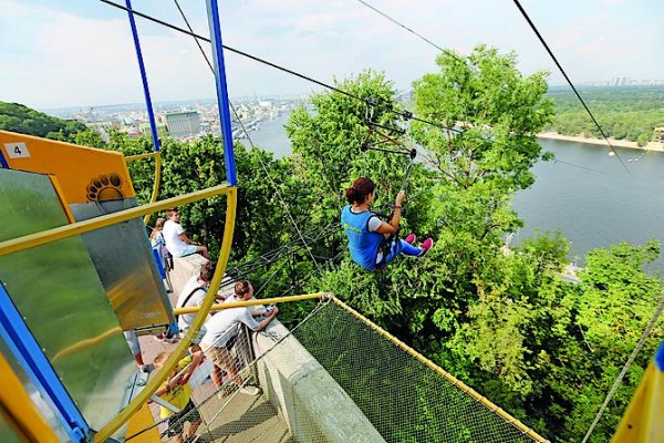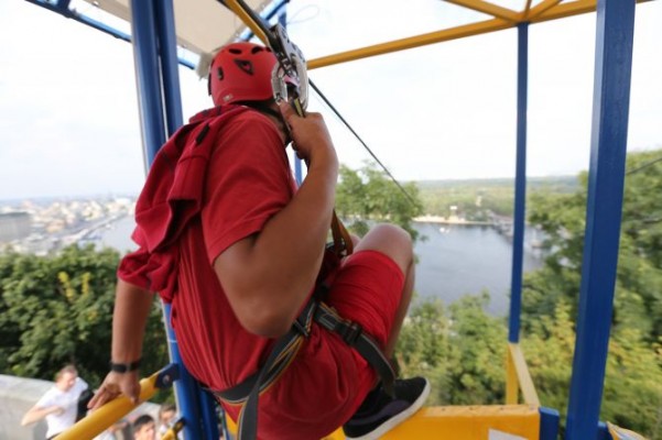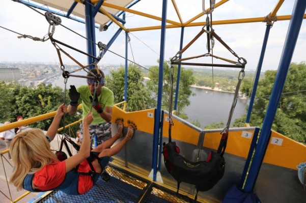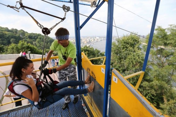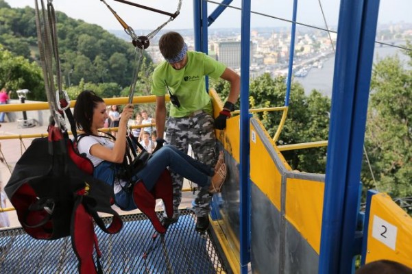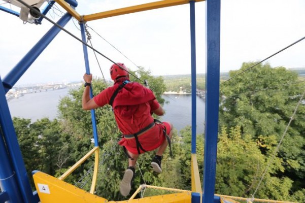 В первый же год после открытия мы организовали фестиваль «Шаленi перегони». Задача испытаний заключалась в том, что по троллею нужно было не съезжать вниз, а карабкаться вверх все 532 метра. Такого Киев еще не видел: в качестве отборочного этапа мы натянули 10 троллеев по сто метров под Аркой дружбы народов — прямо над трибунами. В «вылазке» участвовали 10 парней и 10 девушек. Удивительно, но самые быстрые участники, прошедшие отборочный этап на предельной скорости, почему‑то выдохлись на основном задании. Дело в том, что пролететь 532 метра над Днепром вниз на троллее можно всего за 45 секунд, а вот вскарабкаться по нему обратно — намного сложнее. У подготовленного спортсмена-спелеолога это займет около 15 минут, обычный же человек может потратить более часа. Кстати, на данный момент мы работаем над тем, чтобы сделать соревнования на киевском троллее ежегодными. Кроме того, мой прошлогодний рекорд по протяженности троллея пока не побит, так что я готов принять вызов!