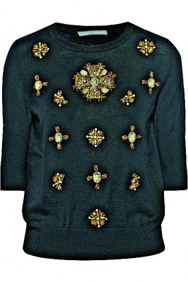 Дизайнер Альберта Ферретти — одна из немногих, кто продолжает сегодня воплощать в работе идеалы женственной красоты. Не важно, какие модные тренды на пике популярности — андрогинность или минимализм, она продолжает хранить верность своему чувству прекрасного. Впрочем, и ее коснулся дух времени: одним из главных мотивов коллекции pre-fall 2014 стала эстетика военно-морской униформы. Брюки-клеш, форменные береты и ремни с золотистой пряжкой, отделка денима золотым позументом, в общем, во многих образах прослеживается стилизация под матросский костюм. Но мотивы эти вплетены достаточно тонко и уравновешены женственными деталями.