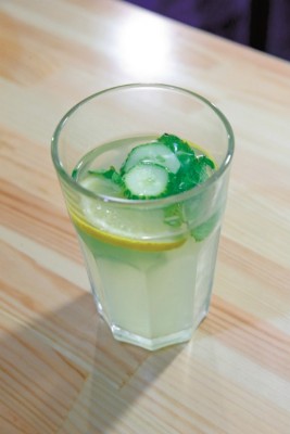 Запить еду можно водой или газированными напитками, фирменным огуречным лимонадом (выдавите в него сок положенного в стакан полукруга лимона, мой был слишком сладким, но лимонный сок его спас), чаем или кофе. В ближайшем времени обещают представить винную карту.