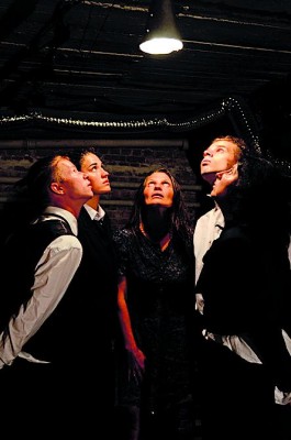 Родословная спектакля «Страсти по Идиоту» по Достоевскому идет от режиссеров Ольги Лариной и Анны Сергеевой к худруку Нового драматического театра на Печерске Александру Крыжановскому, далее — к его сокурснику, автору идеи «Страстей…» Игорю Лысову и к учителю Лысова, создателю московской Школы драматического искусства Анатолию Васильеву. Каждая из режиссеров одновременно является актрисой, которая исполняет по две роли — мужскую и женскую, тогда как видеопроекция их «учетверяет». Вряд ли можно придумать что‑то более театральное, чем такой подход к Достоевскому.