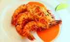 Следующее блюдо, вызвавшее столь же яркий образ, — креветки Jumbo c соусом биск и жюльеном из сельдерея и моркови (250 г, 279 грн). Биск для меня — квинтэссенция морского вкуса. Не свежие устрицы, не мидии, тушеные в белом вине, не обжаренные в сливочном масле с чесноком креветки, не свежепойманная рыба на гриле, разве что марсельский рыбацкий суп буйабес может сравниться с биском в богатстве и насыщенности вкуса и аромата.
