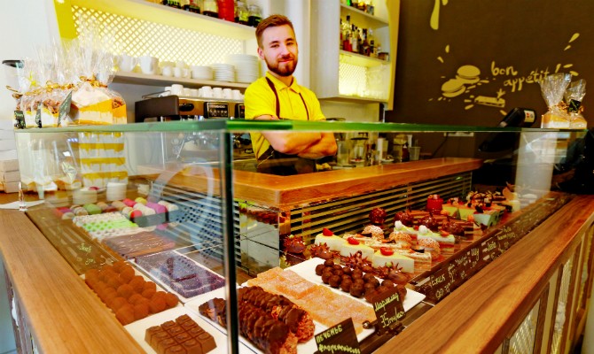 Ожидая заказанные блюда, я подошла к витрине с пирожными, чтобы рассмотреть ассортимент и расспросить у баристы что к чему. Навстречу мне вышла девушка, выразившая обеспокоенность, чтобы мне правильно все рассказали. «Вы управляющая?» — «Нет, я хозяйка». Так я познакомилась с Аней Завертайло, которая с мужем Стасом открыла в апреле на Подоле кондитерскую Honey, ставшую новым «местом силы» для сладкоежек. Как это часто бывает, не важно, на кого ты учился, важно — найти свое призвание. Аня по профессии — инженер-эколог, Стас — маркетолог, много лет проработавший топ-менеджером в западной компании. «У мужа с детства была мечта, — рассказывает Аня. — Иметь неограниченный доступ к сладостям или самому стать кондитером». Можно сказать, она сбылась. Сладостями в Honey заведует опытный кондитер Людмила Николаевна Казмерчук, обучавшаяся у многих парижских мэтров, в том числе у Оливье Бажара и Николя Буссена, и работавшая в кондитерских «Дома кофе» в Пассаже, «Волконском» и отеле Fairmont. Рецепты некоторых пирожных из ассортимента Honey передали Людмиле Николаевне лично парижские шефы-кондитеры. Для их приготовления используются продукты высочайшего качества — французское масло, французский и бельгийский шоколад, польские сливки, натуральная ваниль и тому подобное. Большинство десертов готовится без пшеничной муки, в основном используется миндальная. И если при первом взгляде на витрину я подумала: дороговато (средняя цена пирожного — 65 грн), то, выслушав рассказ и присмотревшись, задумалась: что ж так дешево?