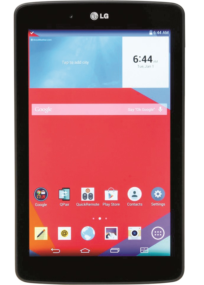 Новинка от LG — это бюджетная 7‑дюймовая версия своего успешного во всех отношениях предшественника, LG G Pad 8.3. Внутри — новый LG’шный интерфейс Optimus UI, а также ОС Android 4.4.2 KitKat — вполне еще свежая. Экран, уменьшившись в диагонали, потерял и в разрешении — с Full HD до HD (1280 х 800 точек). Чтобы сразу закончить с недостатками устройства, упомянем также низкое разрешение камер (задняя — 3 Мп, фронтальная — 1,3 Мп) и отсутствие автофокуса, моноспикер (хотя решеток на корпусе две) и скромную оперативную (1 Гб) и флеш-память (8 Гб). Теперь о достоинствах: несмотря на невысокое разрешение экрана, его IPS-матрица обеспечивает сочное изображение и хорошие углы обзора; G Pad 7.0 отличает хорошая скорость процессора — здесь используется четырехъядерный Snapdragon 44 (MSM8226) — и высокая автономность: энергоэффективный процессор и батарея емкостью 4000 мА·ч позволяют использовать планшет в режиме просмотра видео в течение 17 часов (при 50 % яркости экрана и разрешении видео 720р), а читать электронные книги при 30 % яркости — до 20 часов. Впрочем, главный аргумент «за» — цена, едва превышающая 2600 грн.