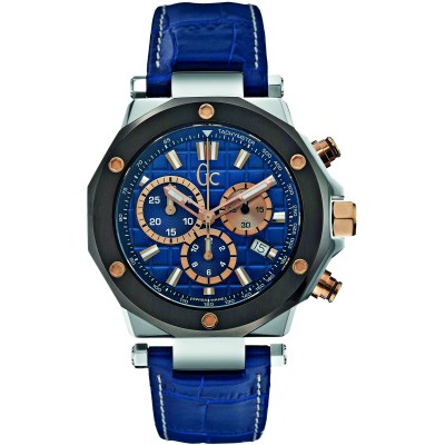 К примеру, новая модель Gc-3 Blue Dial стоит $ 950. За эти деньги вы получаете часы с покрытыми розовым золотом заводной головкой, кнопками хронографа, часовыми индексами, стрелками и винтами на безеле. В Gc-3 Blue Dial установлены дорогое сапфировое стекло и швейцарский калибр, правда, не механический, а кварцевый Ronda 5040D с функцией хронографа, отображающего интервалы до 1 / 10 секунды. Что и говорить, модель невероятно привлекательна. Шарма ей добавляет и 12‑гранный антрацитовый безель из оружейного металла, и темно-синий ремешок из крокодиловой кожи.