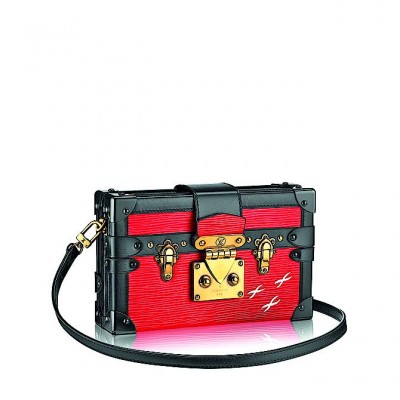 Кстати, о сумках: бесспорно, главной в этом сезоне является модель Petite Malle («маленький сундучок»). Это миниатюрная версия легендарного сундука для фотопринадлежностей, который заказал у Louis Vuitton в далеком 1929 году банкир и путешественник Альбер Кан. По просьбе клиента сундук обтянули красной кожей, а его отличительной чертой стали три буквы «Х», по которым при необходимости владелец без труда мог опознать свой багаж. Новая Petite Malle — практически его точная миниатюрная копия (18 х 12 х 4 см) и отнесена к категории клатчей.