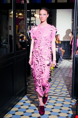 Лилия Литковская перенесла показ своей весенне-летней коллекции в камерную атмосферу французского Café Charlotte, где до этого уже проходили afterparty ее прошлых шоу. С присущей ей лаконичностью в новой коллекции Лилия снова обыгрывает противостояние женственного и маскулинного, украсив классический брючный костюм в клетку аппликациями в виде трогательных цветочных бутонов. В очень необычном ключе дизайнер интерпретирует такую банальную вещь, как цветочный мотив: силуэты бутонов роз появляются на юбках и платьях из перфорированной кожи. Дополняют картину сложный асимметричный крой и детали из благородного бархата.