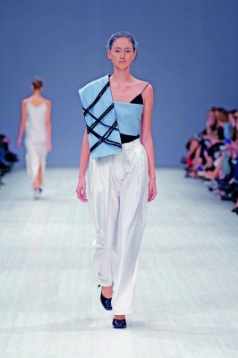 Изменения в привычной стилистике бренда Светланы Бевзы очевидны: весенне-летняя коллекция, показанная в стенах киевского мультибренда Asthik, строится на эстетике 1970‑х. Это значит, что знакового для Бевзы минимализма и белого total look в коллекции нет. Клеш, деним, платья и блузы с открытыми плечами — мотивы Flower Power прослеживаются в коллекции с первых секунд знакомства. Впрочем, надо отдать должное Светлане: в новых образах нет ни буйства красок, ни присущей хиппи небрежности. Кроме того, бунтарское настроение 1970‑х полностью уравновесили интерьерный минимализм Asthik и сценография шоу.