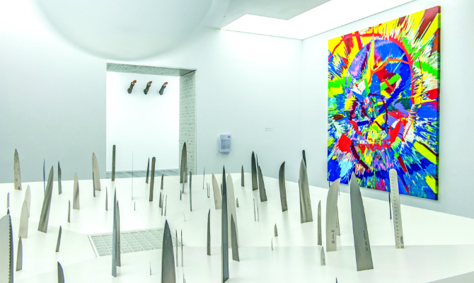Как бы то ни было, при всей скромности в репрезентации выставки, намерение порадовать и удивить зрителя присутствует. В качестве аперитива привожу названия представленных экспонатов: фотоработы «Стейтвилл, Иллинойс» (2002), «Собор I» (2007) и «Пхеньян V» немецкого фотохудожника Андреаса Гурски; «Министр обороны» (1985) Джеффа Кунса; «История боли» (1999), а также «И все они — творения Бога» (2005‑2006) Дэмиена Херста; «Мисс Ко2 — медсестра» (2004) Такаши Мураками. Из названий становится понятно, что чистого эскапизма не будет. Министры, медсестра, боль, Бог… Привязка к актуальной для украинского зрителя теме все‑таки есть, даже если она формируется в уме самого созерцателя. Правда, пытаться предугадать, как будут взаимодействовать две экспозиции, смысла нет. Нужно идти, смотреть, думать.