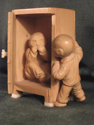С деревом ситуация проще: крымского самшита, заготовленного 25 лет назад, мне хватит надолго. Еще один очень популярный у резчиков материал для изготовления нэцкэ — эбеновое дерево. Его у меня тоже достаточно — я купил 5 килограммов эбенового дерева в Шри-Ланке у местных резчиков, заплатив $ 18 за килограмм, при рыночной цене $ 50. Четверть века назад, когда я только начинал вырезать нэцкэ, о таком разнообразии материалов речь, естественно, не шла: тогда даже информацию о миниатюрных японских фигурках было не найти. Зато сейчас, благодаря социальным сетям, можно запросто переписываться с японскими мастерами и коллекционерами. У меня уже есть несколько таких друзей: мы часто общаемся и я собираюсь наконец воспользоваться их приглашением и посетить Японию. Потому что, согласитесь, быть мастером японской миниатюры и не посетить родину нэцкэ как‑то нелогично.