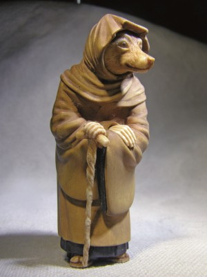 Мой путь к нэцкэ был долог. Резать по дереву я начал еще в дошкольном возрасте, а в восьмом классе попробовал вырезать по кости и камню. Как и многие в СССР, я узнал об искусстве нэцкэ из фильма «Каникулы Кроша», снятого по роману Анатолия Рыбакова, и в конце 1980‑х попробовал вырезать первые фигурки из имеющихся под рукой материалов — березы, бука и дуба. Вначале я делал копии известных работ из «Эрмитажа», а позже, когда у меня начали появляться традиционные для производства нэцкэ материалы (добытый в Крыму самшит и случайно приобретенный в Днепропетровске на тусовке художников бивень мамонта), стал придумывать свои сюжеты.