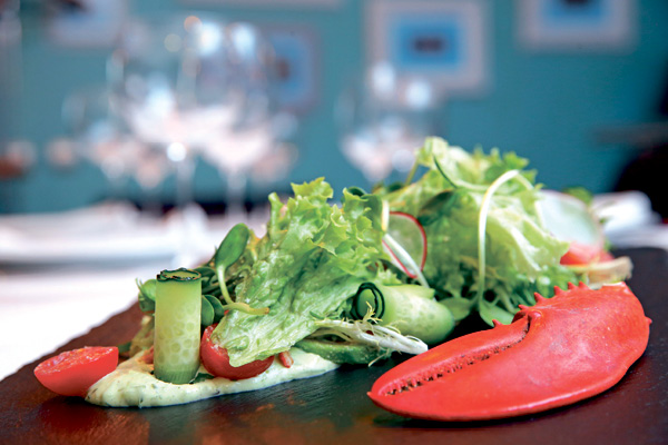 Рыбном базаре», например, сейчас предлагают «Лобстер-меню». В него входят: теплый ролл с мясом лобстера, салат из лобстера с авокадо и томатами черри, биск из лобстера, черный бургер с мясом канадского лобстера, спагетти из лобстера в сливочно-сырном соусе и ризотто с лобстером и пармезаном. Выход каждого блюда — 250 г, цена — 99 грн. Спелый авокадо, измельченный в блендере, в салате служит заправкой вместо привычных майонеза или винегрета, и это очень радует — возможность использовать маслянистую мякоть аллигаторовой груши в качестве соуса (давно известную во всем мире), почему‑то в киевских ресторанах до сих пор не использовали. К нему добавлены сушеный чеснок и тонкая стружка свежего огурца, обогащающие соус вкусом и свежестью. Большая порция, свежие, легкие и полезные ингредиенты, гармоничный вкус. Блюдо пользуется большой популярностью как у мужчин, так и девушек.