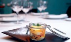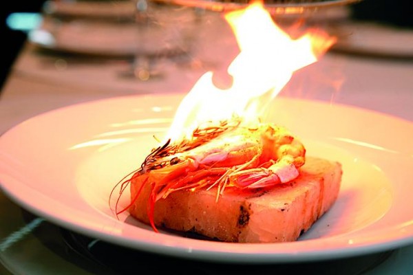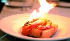 Новое предложение дня — дикие крупные креветки, которые готовят на раскаленном в печи бруске розовой гималайской соли. Парочку ракообразных выносят под стеклянным колпаком с веточкой розмарина. Перед подачей официант поджигает розмарин и снова накрывает на несколько секунд, чтобы креветки пропитались ароматным дымом. Блюдо — эффектное, излишнюю солоноватость мне хотелось смыть лимонным соком или глотком белого вина. В период фестиваля молодого вина божоле — с пятницы по воскресенье — блюдо будет стоить 135 грн. После — 99 грн.