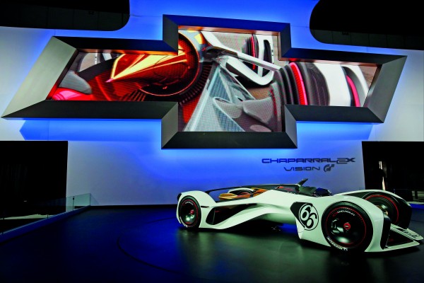 Сегодня у автопроизводителей стало хорошим тоном не только создавать виртуальные модели для гоночного симулятора Gran Turismo 6, но и воплощать их жизнь. И главным шоу-стоппером LA Auto Show по праву стал концепт с самым длинным названием — Chevrolet Chaparral 2X Vision Gran Turismo. Но по другой причине — на сегодняшний день Chevrolet перещеголял всех соперников по Gran Turismo и вообще все концептуальные авто. Ибо даже идентифицируется гиперкар как, собственно, автомобиль не сразу. Нужно найти определенный ракурс, чтобы определить, где здесь перед, где зад и где кабина. Еще больше времени уходит, чтобы понять, как попадает внутрь и где располагается пилот. Все очень необычно — полулежа, головой вперед — как на мотоциклах, участвующих в рекордных заездах на солончаковых плато. Руки и ноги пилота при этом словно пригвождены к колесам. Дизайнер Chaparral 2X Чарльз Лефранк подсмотрел идею подобного распятия в конструкции вингсьюта, с помощью которого экстремалы вроде Феликса Баумгартнера парят в заоблачных высотах со скоростью звука. Подобная «посадка» стала возможна благодаря адаптации авиационной технологии проецирования информации на забрало шлема. То есть автомобили минималистов теперь могут вовсе обходиться без приборной панели, что открывает новые перспективы в компоновке и оформлении кокпитов.