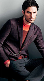 Еще одно новшество — узор «шеврон», который украшает почти все предметы зимней коллекции, включая трикотажные пиджаки и даже некоторые галстуки. В народе этот узор известен под названием «елочка», только у Армани его элементы намного крупнее и часто ярче классического прообраза. «Шевроном» обзавелись и некоторые модели джинсов. Другое отличие джинсовой линии — новый крой, более свободный в бедрах и сужающийся к низу. Обладателям крупных фигур идеально подойдут джинсы с резинкой в поясе. Впрочем, на атлетичных мужчинах они тоже смотрятся отлично.