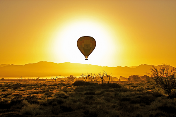 Ради полета на воздушном шаре придется заплатить около $ 800 с человека и встать в пять утра. Затемно всех грузят в машины и везут на место старта. Две корзины по 12 человек в каждой на рассвете отрываются от земли и устремляются ввысь. Мы летим над дюнами, ядовито красными, оранжевыми, желтыми в лучах восходящего солнца.