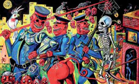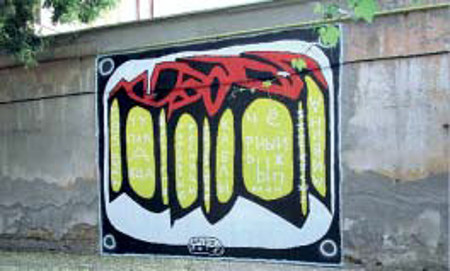 Но помимо социально-ангажированных художников кураторы пригласили к участию и их закоренелых идейных оппонентов, «резидента жлоб-арта» Ивана Семесюка и «вольного художника» Олексу Манна, которые представляют в Одессе свой спецпроект «Бактерия» под лозунгом «Насільноє Навязиваніє Чуждой Нам Парадіґми» (выставка проходит в галерее NT-Art на Лидерсовском бульваре).