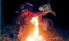 «На стоянке я переодевался, выбрасывал носки и белье, раскатывал спальный мешок и обязательно разжигал костер — это очень важно для психофизической разгрузки. Затем плотно (с мясом) ужинал и часа в 2‑3 ночи ложился спать — прямо под открытым небом. Палатку в дорогу не брал: я знаю, что это такое — в «убитом» состоянии ставить ее и потом разбирать, на это уходит минимум 40 минут в день. Мне повезло с погодой — под сильный дождь попал лишь один раз. Поначалу не было и комаров — они появились уже ближе к концу, а под Новгородом-Северским их было столько, что думал не выживу».