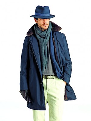 Затронуть придется и тему лингвистики. Так, если названия изделий «Себринг», «Сент-Мартин» и «Регент» понятны и объяснимы, то собственное имя всесезонного пальто «Мартингал» нуждается в дознании. Мартингал — это и элемент конской упряжи, и увеличение ставок при проигрыше в азартных играх, и декоративно-прикладной пояс на талии. Но тут у нас не хлястик, тут у нас целый открепляемый жилет со стеганой фактурой и скрытой молнией.