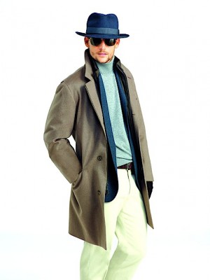 Им укомплектовано удобно-нарядное пальто из чистого кашемира, что не может не вводить некоторых мужчин в замешательство. Укороченные пиджаки — это понятно. Свитера-жакеты — это привычно. Но чуть ли не спортивного вида жилет, прилегающий к классическому пальто — до этого еще нужно дорасти. Это уже девятый класс школы Loro Piana.