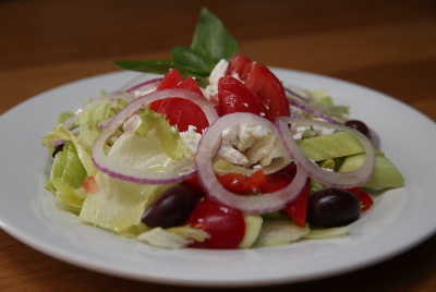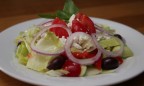 Греческий салат (350 г, 84 грн) претерпел изменения: вместо сыра фета в нем теперь используют фетаки — мягкий сыр с более ярким вкусом, оливки теперь используют только сорта «каламата», салат-латук заменили на салаты «бостон» и «айсберг», а помидор (теперь - бланшированный, без кожицы) стал центральным элементом блюда, разрезанный на дольки, но сохраняющий форму целого овоща. Среди горячих закусок раскрылся цветок — из лука с соусом тартар (250 / 50 г, 64 грн).
