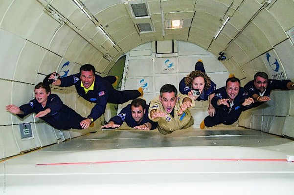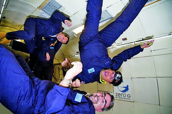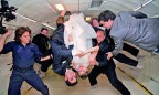 После ненавязчивого досмотра металлоискателями мы зашли в автобус, а минут через 20 погрузились в самолет. Не скрою, ладони мои перед стартом слегка увлажнились от волнения. Впрочем, взлет ничем не отличался от обычного рейсового. Еще через 20 минут мы уже покатом лежали на матах в ожидании первого режима. У американцев и тут все оказалось предельно функционально. Первый режим называется «Марс» — 60 % гравитации и, соответственно, вашего веса. Можно отжиматься на указательных пальцах обеих рук, чем все мы по совету организаторов тут же и занялись. Второй режим — «Луна», 30 % гравитации. Все отжимаются на одном пальце одной руки. И начиная с третьего режима — понеслось — гравитация ноль! Разжимаю кулак с заранее зажатыми в нем M&M’s-ами — они зависают в воздухе передо мной. Тут‑то я наконец поверил, что все правда — я в полнейшей невесомости, меня в самом деле никуда не тянет. Я поверил в чудеса. Оставшиеся режимы пронеслись очень быстро. Мы вертелись в воздухе, жонглировали друг другом, пробегали на руках несколько кругов по фюзеляжу самолета, как белки в колесе. Нам даже разрешили поиграться водой. Она, как и в космосе, собирается в капли и летает по салону, ее легко можно поймать губами.