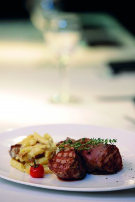 Другие предложения Slow Cooked меню — нежный ролл из индейки с французской фасолью, сервированный паровыми овощами и свекольным соусом (340 / 150 г, 149 грн), тендерлоин с картофельно-сельдереевым пюре и винным соусом «Пино Нуар» (300 / 200 г, 169 грн), филе сибаса со спаржей, салатом из фенхеля и соусом из пармской ветчины (100 / 60 г, 175 грн) и стейк из семги, маринованной в виски Chivas Regal с двухцветной полентой, сливочным соусом и красной икрой (250 / 140 г, 143 грн).