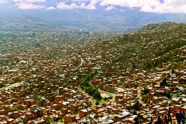 Ла-Пас очень похож на непальский Намче-Базар, увеличенный в тысячу раз. Миллионы лет назад здесь был вулкан, сейчас все склоны потухшего кратера облеплены лачугами. Местные жители весьма колоритны. Низкорослые пухлые женщины все поголовно ходят в ярких юбках-колокольчиках, шляпах-котелках и заплетают угольно-черные волосы в школьные косички.