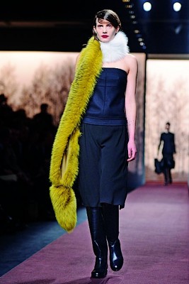 Мех в качестве декора — еще один тренд сезона, который придется по душе тем, кто пока не решился на полноценную шубу. Как говорится, во‑первых, это красиво… Здесь опять вспоминается Fendi — сумки и обувь из цветного меха. Sonia Rykiel украшает вечерние босоножки легкомысленными розовыми помпонами. Marni и Lanvin предлагают длинный меховой шарф в качестве вечернего аксессуара. Писк сезона — меховые горжетки. Они дополнят вечерний лук, защитят от сквозняков и позволят не расставаться с любимыми соболями. У Marc Jacobs и Vika Gazinskaya эти изделия выполнены в виде лисьей шкуры с ушами и лапками. Но на звание самой причудливой вещи сезона претендуют, пожалуй, гипертрофированные «боксерские» рукавицы из меха Marni и Alexander Wang.