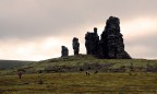 На следующий день метеорологи сообщили о низкой облачности в районе Маньпупунёр. В тумане вертолет сесть на плато не мог, но он по крайней мере прилетел. Пилоты потребовали подписать документ о том, что если мы упремся в пелену облаков и не сможем приземлиться на плато, то не будем жаловаться и требовать вернуть деньги. Все согласились — ждать больше не было сил. Погрузились в салон Ми-8 и полетели. Внизу проплывало то самое «бескрайнее море тайги», пронизанное реками, вдоль которых виднелись редкие домики староверов. Через полтора часа лета из свинцовых туч появилось плато со стоящими на нем великанами.Погода была неважная, садиться пилоты не хотели. Употребив весь свой словарный запас, мы все‑таки уговорили их сесть, пообещав, что управимся за пятнадцать минут. Как только открылась дверь, все рванули наружу — и по колено увязли в мягком и влажном мху. Я бежал и думал, что сказочный Мордор выглядит именно так — притягательно и пугающе одновременно. Ни одна фотография не в состоянии передать свист ветра и запах воздуха, а они здесь уникальные. Времени хватило лишь на то, чтобы сделать пару групповых фотографий и обойти несколько великанов. Погода продолжала портиться, и пилоты, не тратя попусту слов, завели двигатель. Сердце колотилось как бешеное, но вовсе не от быстрого бега. Мы улетали, и плато медленно исчезало в серой дымке. Семь великанов простояли на этом месте двести миллионов лет, простоят еще столько же, и лишь изредка романтические безумцы вроде нас приходят их навестить. Следующая группа ориентировочно соберется в июле, и я думаю махнуть к Болванам еще раз. Тридцатиминутной встречи мне не хватило: хочется узнать их поближе.