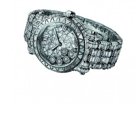 Однако посвященная сэру Элтону Джону коллекция Chopard меркнет в сравнении с другой новинкой мануфактуры — часами Happy Sport Diamantissimo. Этот шедевр ювелирно-часового искусства выпустили в рамках мероприятий, посвященных двадцатилетию легендарной коллекции Happy Sport. Сделанный из белого золота корпус Happy Sport Diamantissimo инкрустирован 958 бриллиантами прямоугольной огранки и 1978 круглыми камнями общим весом 65 карат. Если надоест наслаждаться бриллиантовым блеском, сквозь сапфировое стекло, установленное вместо задней крышки, можно любоваться работой часового механизма. Стрелки часов сделаны из родия, а браслет крепится к корпусу по специальной технологии, исключающей появление щелей. Радость обладания такими часами стоит $ 1 580 000.