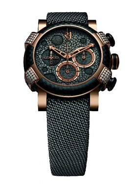 Компания выпустила в этом году сразу несколько сверкающих часов. На массивном 50‑миллиметровом корпусе новой модели из коллекции Steampunk разместилось 286 белых бриллиантов. Безель моделей Moon Invader, сделанный с использованием частичек обшивки космического корабля Apollo 11, инкрустирован 70 белыми бриллиантами или черными сапфирами. И модель Moon Dust Red Mood Chrono, кроме настоящей лунной пыли, использованной для декорирования циферблата, украшена все теми же (вам же еще не надоело?) бриллиантами количеством 164 шт.
