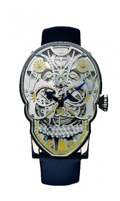 Начиная с ХVII века часы с черепами были очень популярны — череп символизировал скоротечность времени. В конце XIX столетия на волне массового атеизма череп превратился в табуированное изображение и постепенно исчез с циферблатов. Популярность ему вернула массовая культура, стремящаяся сделать привлекательным любой, даже самый необычный символ. Череп — это новый Микки-Маус.