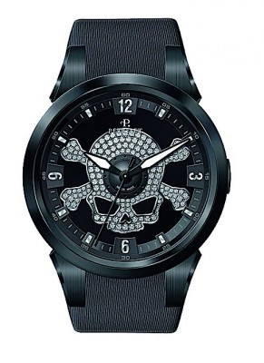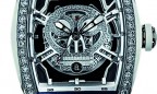 В этих часах концепция сочетания несочетаемого получила самое яркое воплощение. Казалось бы, каучуковый ремешок и корпус из нержавеющей стали должны выглядеть странно в компании бриллиантов, а череп явно не соответствует нарядному виду этой модели. Тем не менее Skull Diamond получился настоящим произведением часового искусства. Скелетонизированный механизм, покрытый родием и инкрустированный камнями, рассчитан на 42 часа работы без подзавода и способен выдержать погружение на глубину 100 метров.